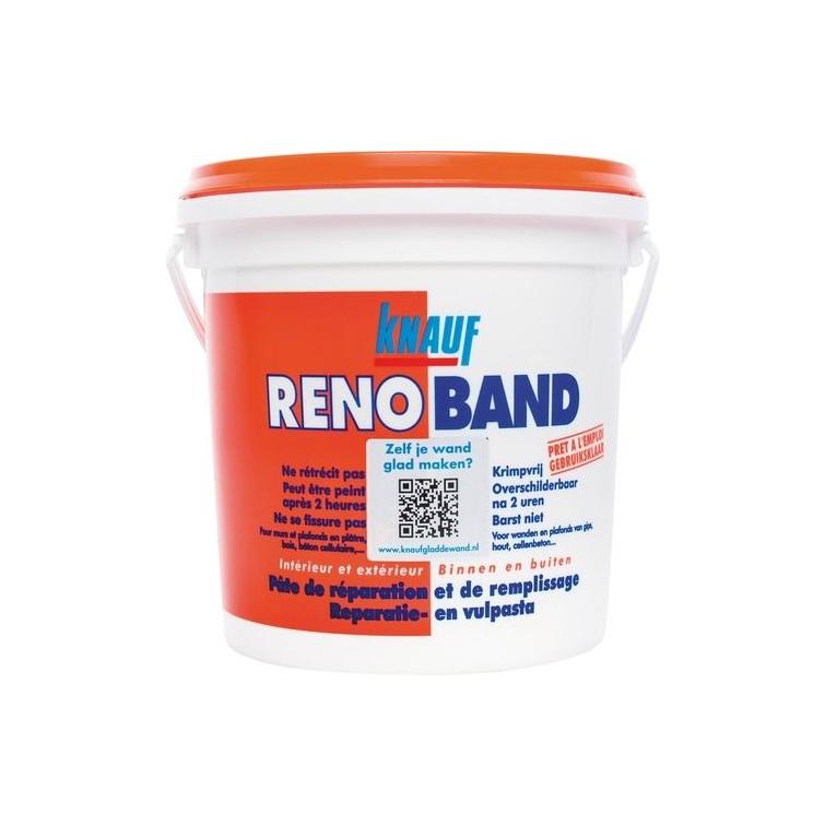Knauf Renoband 1 liter vult gaten en scheuren in één keer. Geschikt voor wanden en plafonds van gips, hout en cellenbeton voor zowel binnen als buiten. Renoband is krimpvrij, na 2 uur overschilderbaar en barst niet. 1 liter.