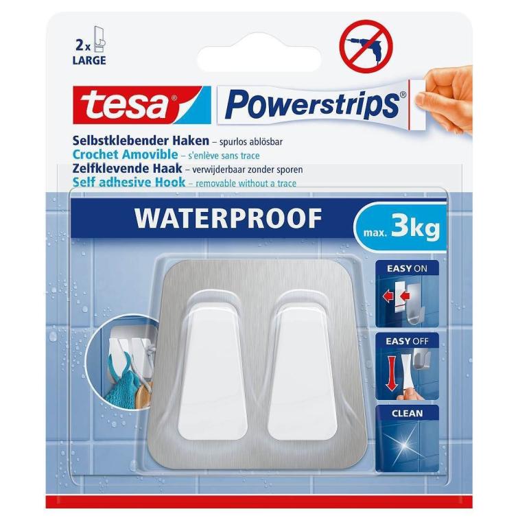Zelfklevende Powerstrips Waterproof duohaken zijn gemaakt van edelstaal met hoogwaardige kunststof haken. Een duohaak kan tot maximaal 3 kg dragen op gladde oppervlakken, zoals glas of tegels en is speciaal ontworpen om objecten aan op te hangen in zones met een hoge vochtigheid. Daarom zijn ze bijzonder geschikt voor gebruik in badkamers – zelfs onder de douche – of in keukens, bijvoorbeeld om ovenwanten, theedoeken of borstels te bewaren. Bij montage is er, dankzij de innovatieve Powerstrips technologie, geen gereedschap nodig. Na gebruik laten de herbruikbare metalen haken geen sporen na.